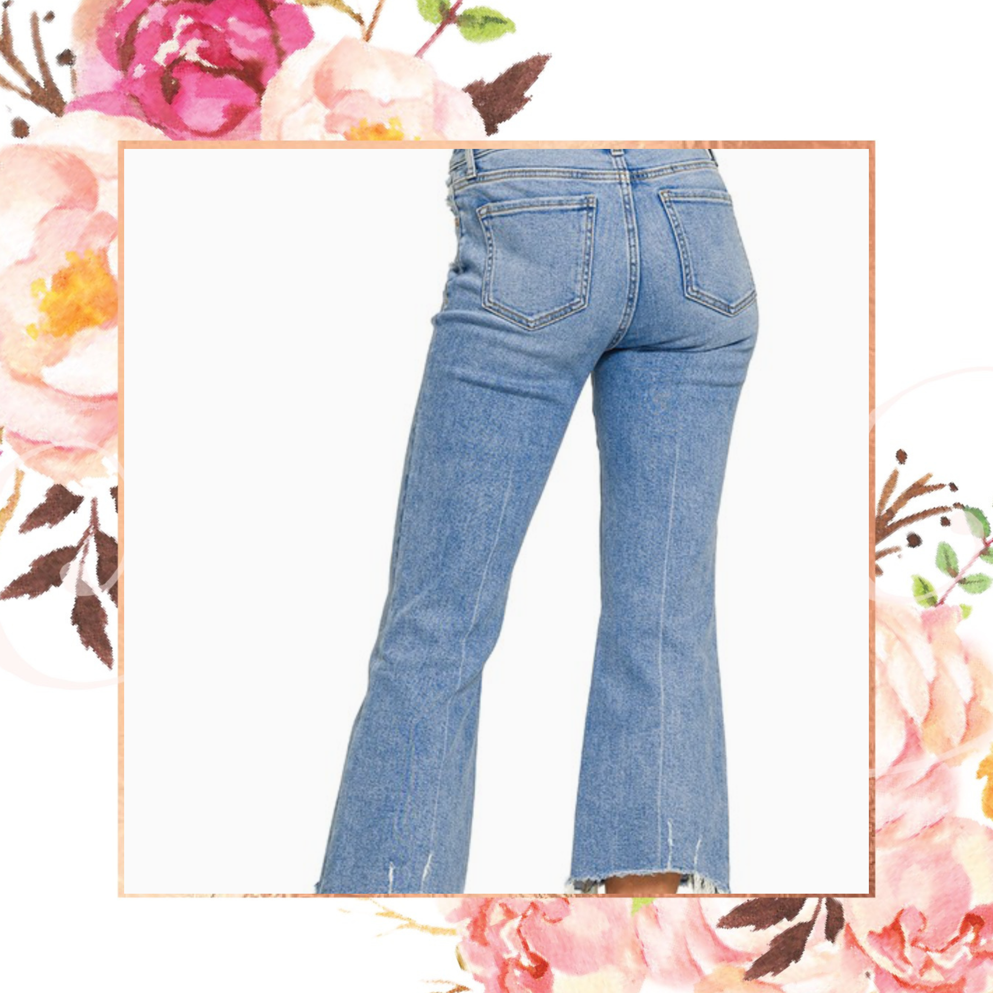 Embrace the latest denim trend with our Kick Crop Flare Jeans. With a flattering kick flare cut, these jeans elongate your legs and add a touch of playful flair to your outfit. The perfect addition to any wardrobe for a modern and stylish look.