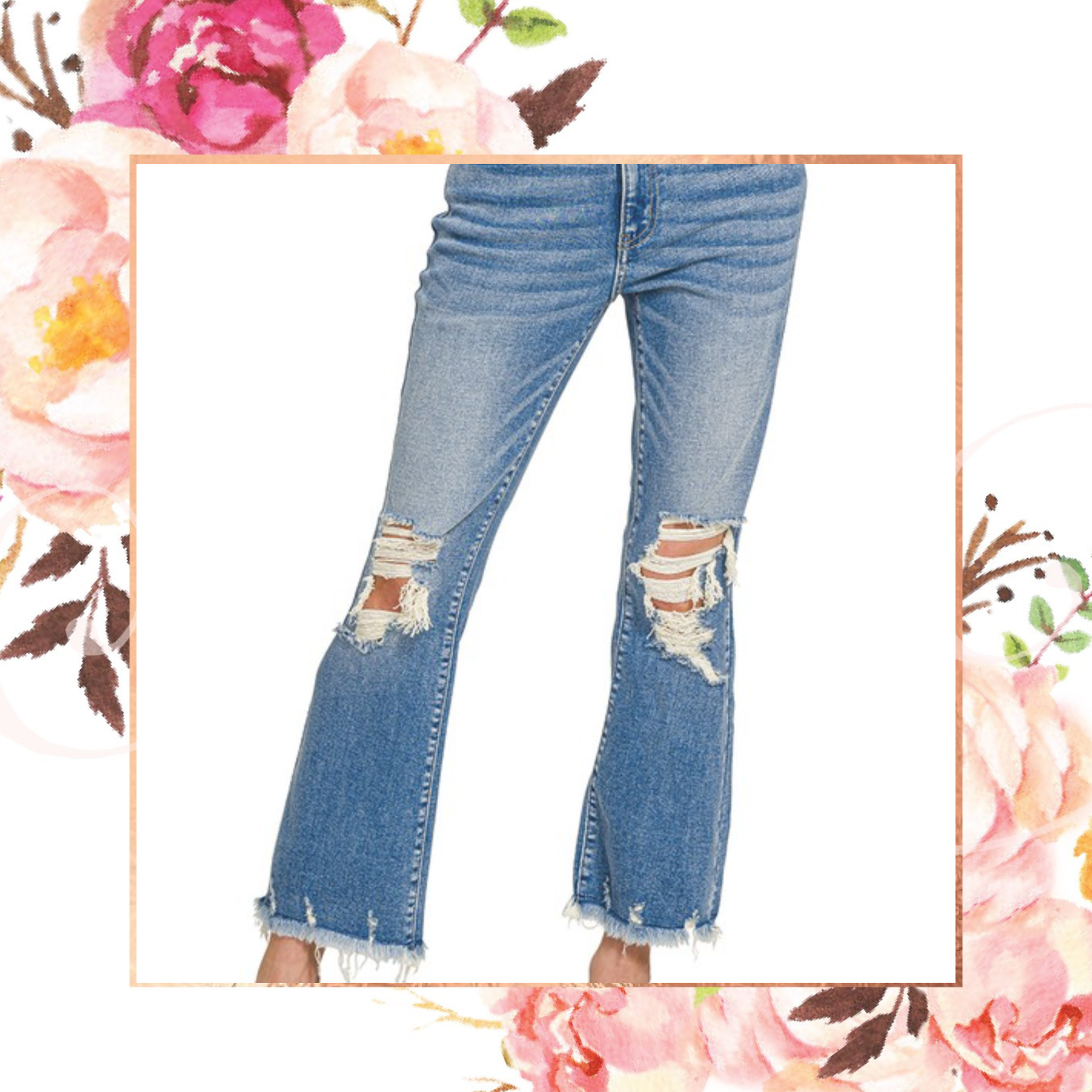 Experience the perfect blend of comfort and style with our Distressed Knee & Hem Medium Denim! These stretch denim pants not only offer a modern, edgy look with their distressed details, but they also move with you, ensuring all-day comfort. Elevate your wardrobe and embrace your unique style!